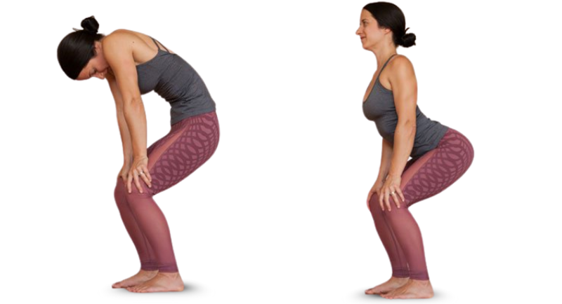 نوع ایستاده این حرکت برای افرادی که پشت میز مینشینند بسیار مفید است و به کاهش قوز گردن کمک میکند. پاها را به اندازه عرض لگن باز کنید، زانوها را کمی خم کنید و در دو جهت ستون فقرات را حرکت دهید. هر وضعیت را پنج تنفس نگه دارید.
