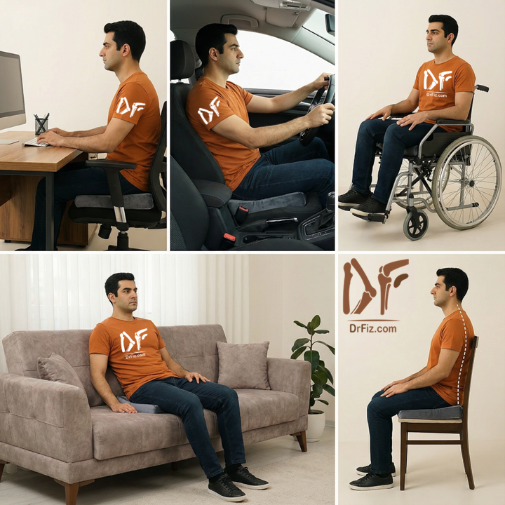 همچنین در وضعیتهایی که نشستن باعث تشدید دردهای ناشی از فشار روی ستون فقرات میشود، مانند دردهای ناحیه کمر، پشت و دنبالچه، استفاده از این بالشتک میتواند کمککننده باشد. در بسیاری از موارد، درد ناشی از نشستنهای طولانی ممکن است با مشکلات مرتبط با قوز پشت، قوز گردن و قوز کمر همراه شود، زیرا وضعیت نامناسب ستون فقرات در نشستن باعث ایجاد فشار در نواحی بالایی و پایینی ستون فقرات میشود. بالشتک نشیمن به بهبود توزیع نیرو کمک میکند و میتواند در کاهش فشار وارد بر مهرههای پایین کمر و لگن موثر باشد و به بهبود وضعیت کلی ستون فقرات کمک کند.